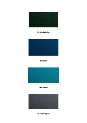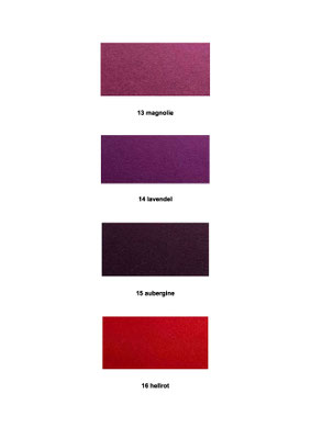 Hinweis: Diese Farbpalette dient als Orientierung und die Farben sind nicht immer alle verfügbar; bitte bei konkreter Bestellung die Farbnummern angeben, die direkt bei den jeweiligen Artikeln angegeben sind.